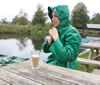 with a bunch of wellies and try some on. In a yellow rain jacket
