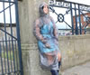 she is in a shiny blue hooded Rukka mac and she is overlooking
